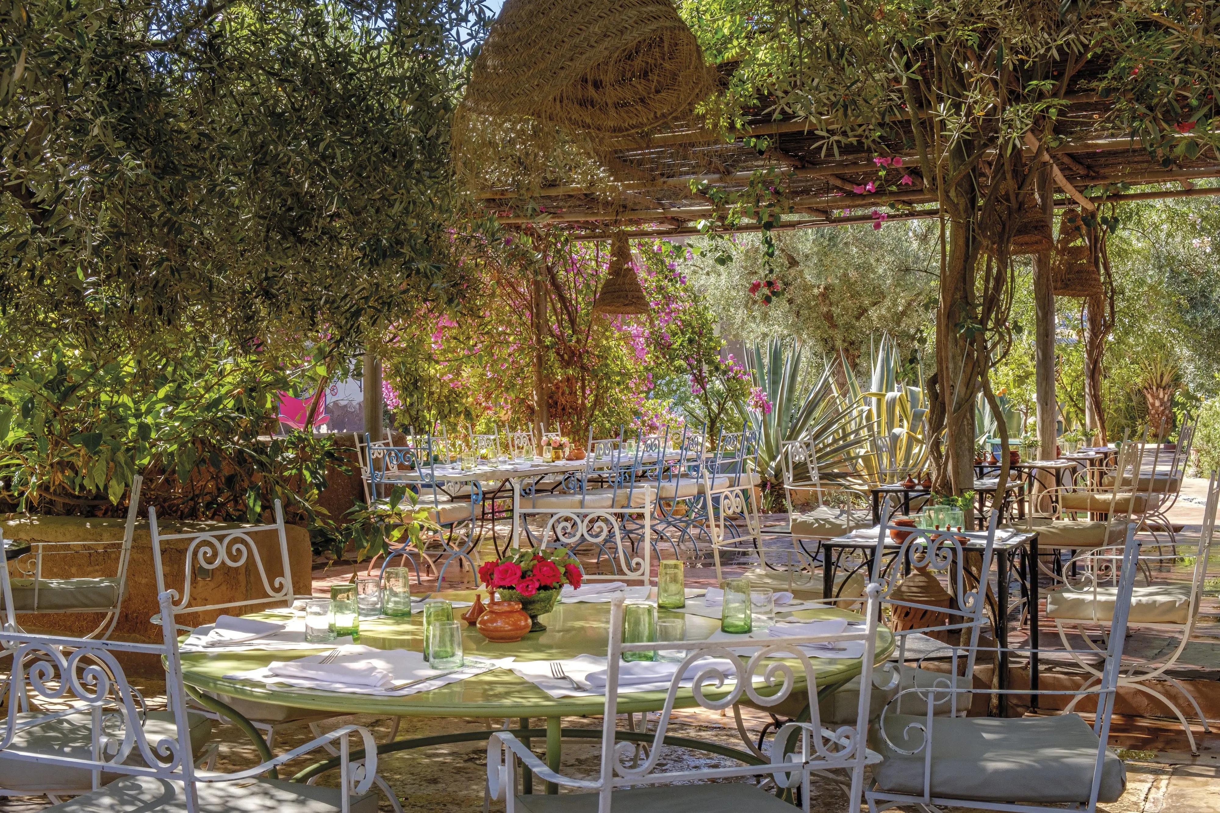 The estate sprawls across 15 hectares of meticulously maintained gardens, divided between the Beldi Oliviers and the Beldi Orangers. Guests wander through winding alleyways, past shaded inner courtyards scented with thousands of rose blooms, through hidden riads and beneath centuries-old olive trees. Over 12,000 rose bushes paint the grounds in colour from spring through autumn, and the sweeping views toward the snow-capped Atlas Mountains provide a backdrop that no decorator could ever replicate.