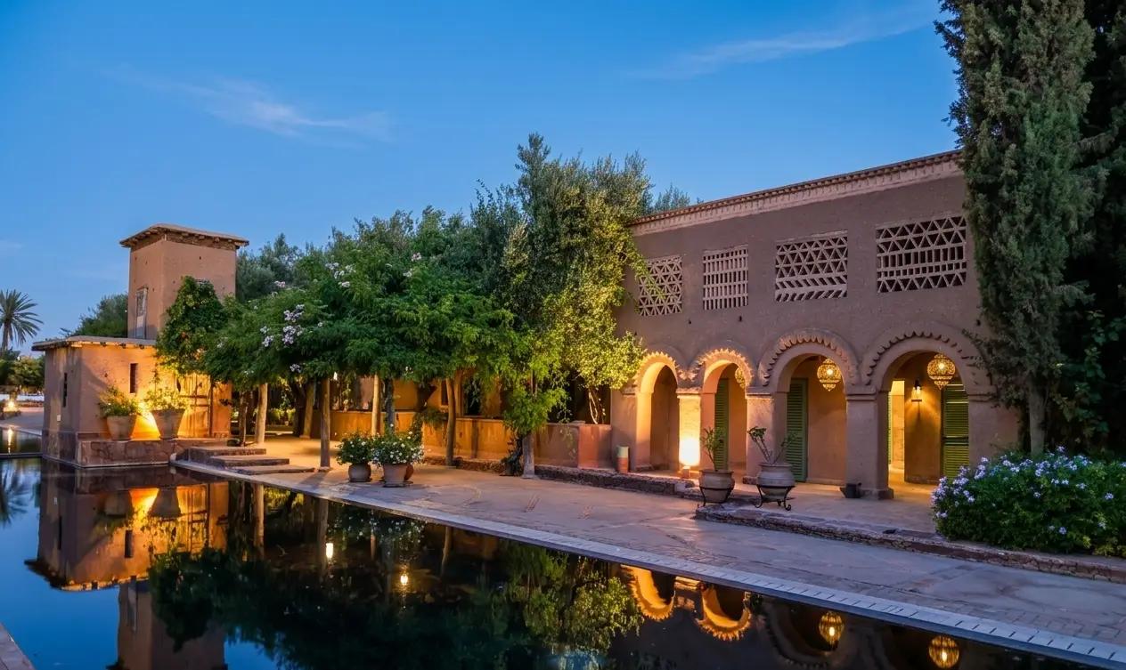 Legendary wedding venue near Marrakech set on 15 hectares of rose gardens, olive groves, and mudbrick architecture.