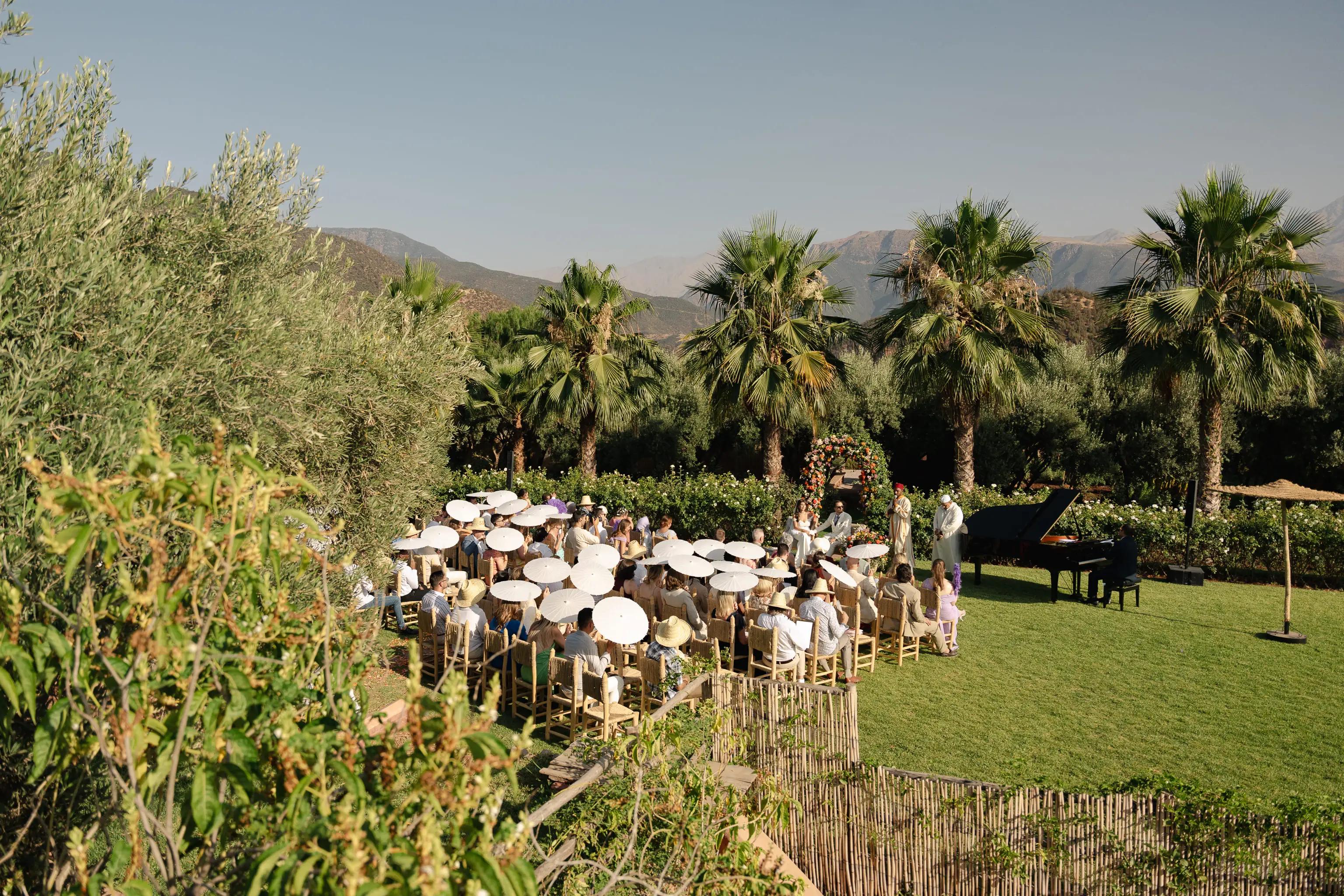Villa Taj in Marrakech is a luxury wedding venue surrounded by olive trees and Atlas Mountain views.