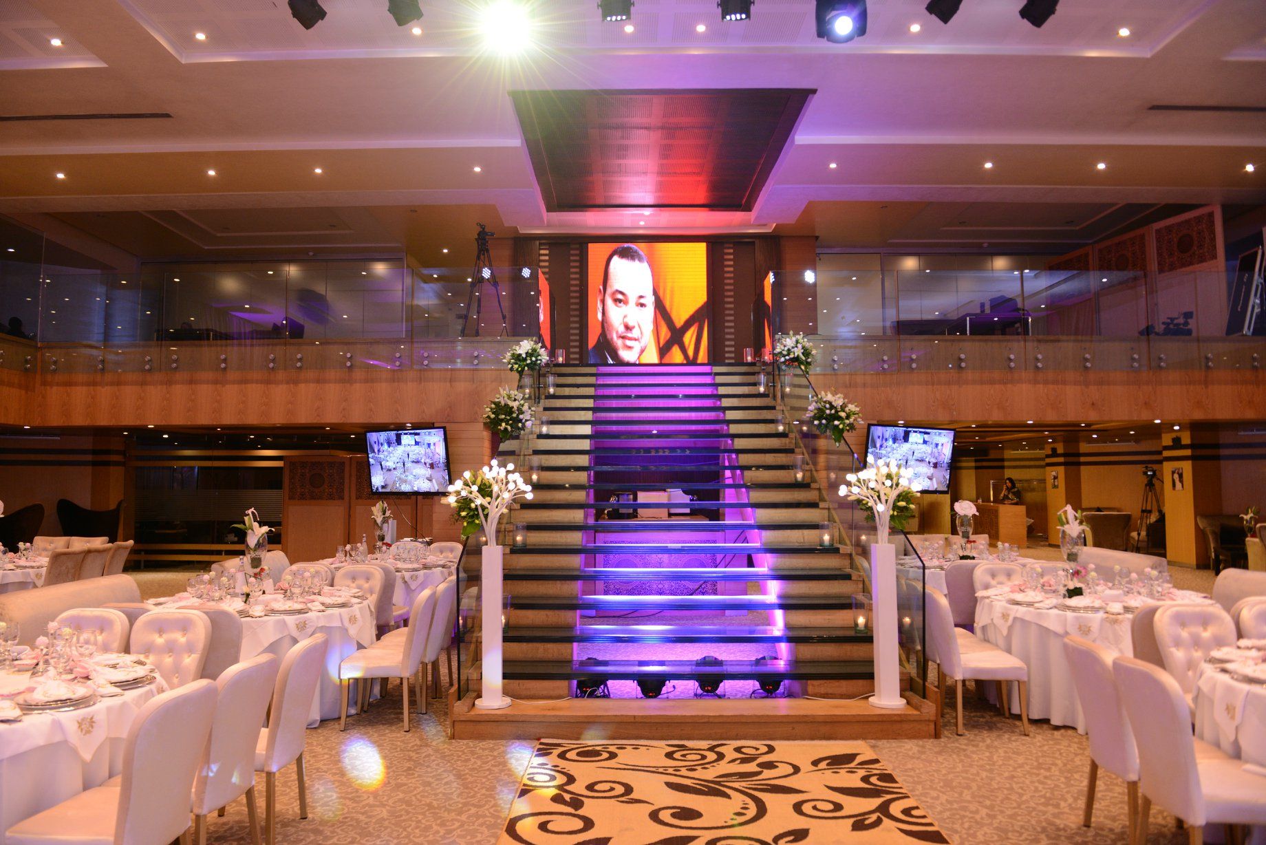 Qasr al Anwar is a distinguished event venue located in the Bahia Azahar area of Tangier. Its expansive spaces include a large main hall with the capacity to host up to 800 guests in theatre-style setup, plus smaller meeting rooms and complementary areas for multipurpose use. With breathtaking views and a professional events team offering tailored coordination, decoration and logistics, it’s ideal for weddings, galas and celebrations that require elegance combined with flexibility.