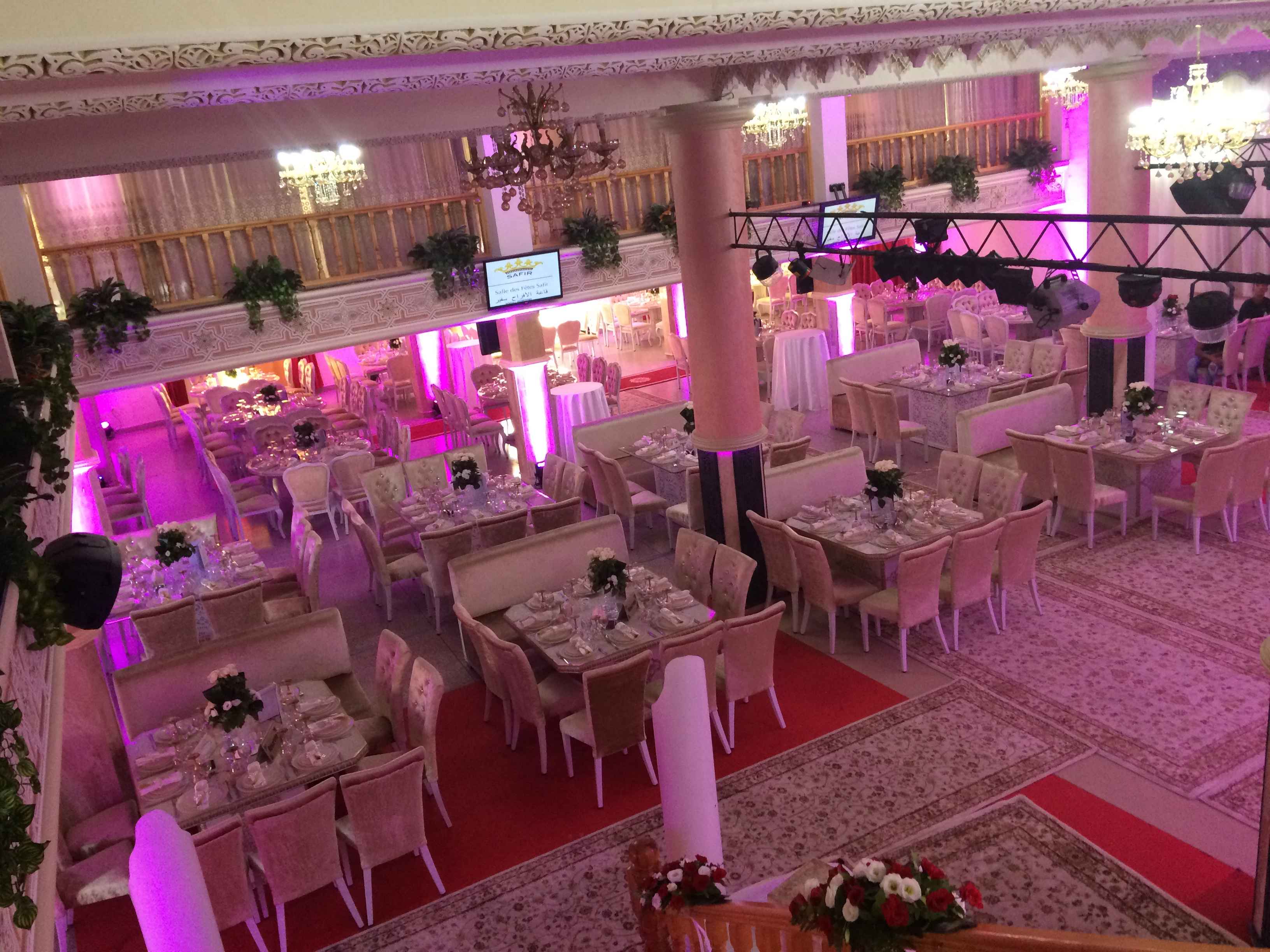 The hall is described as elegant and refined, offering a large-capacity space designed to accommodate weddings, engagement parties, anniversaries, and a wide range of private celebrations. Its layout and equipment make it suitable for both grand and mid-sized events, with seating that can be arranged to suit the specific needs of each occasion.