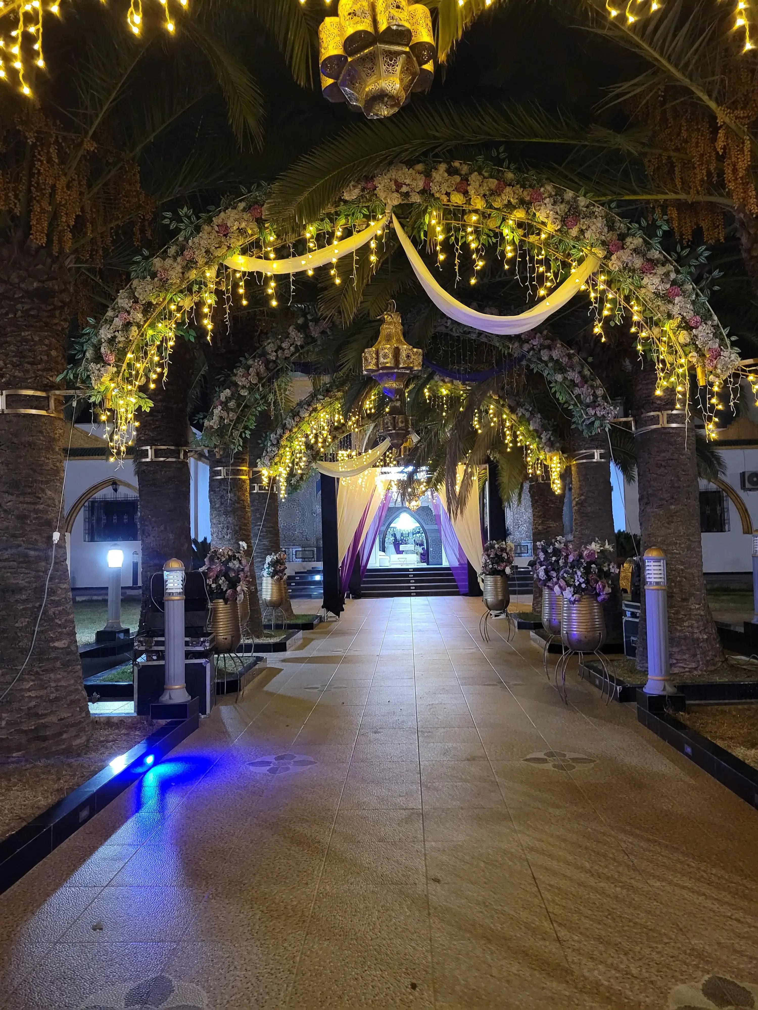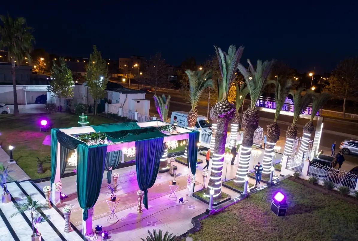 The palace has earned a reputation for excellence in hosting Moroccan wedding ceremonies and celebrations, drawing couples who desire a setting that reflects the grandeur and cultural richness of the region. Its interior is designed with attention to detail, featuring grand ballroom spaces adorned with decorative Moroccan craftsmanship, high ceilings, elegant lighting, and sophisticated decor that creates an atmosphere of unmistakable prestige.