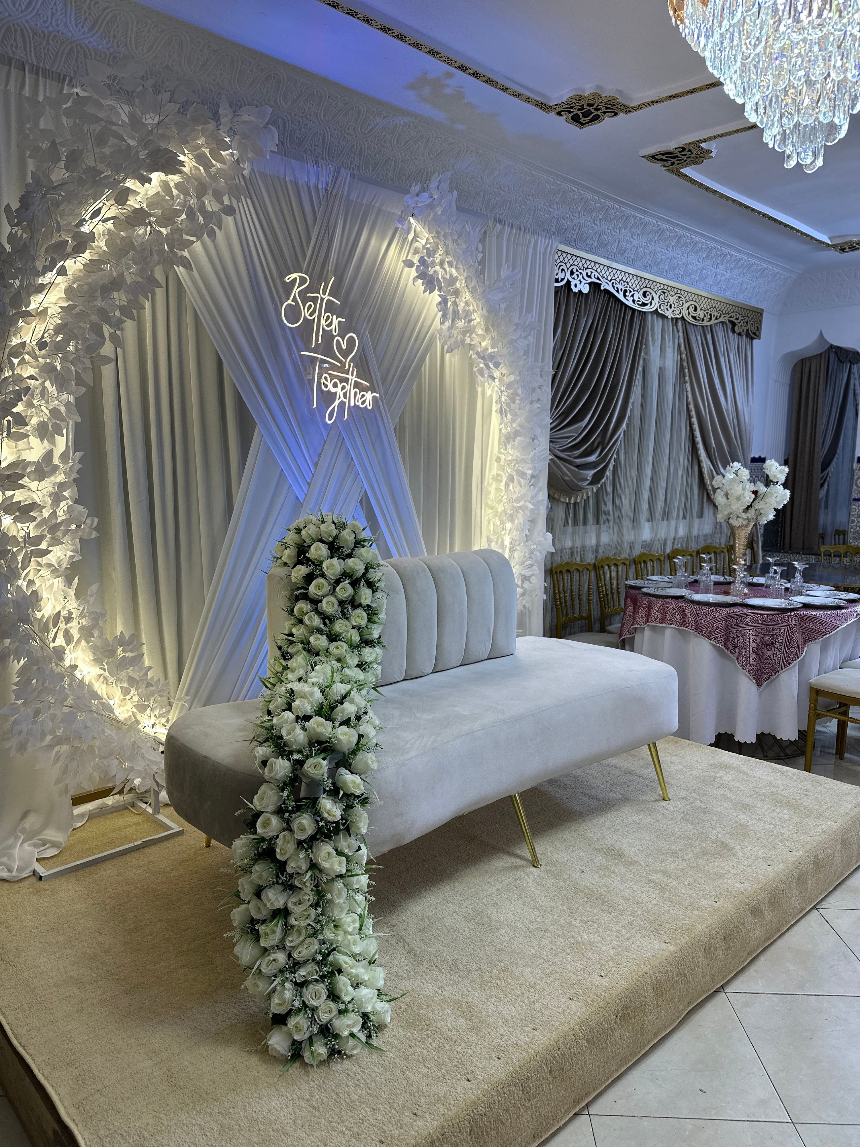 El Salón de Fiestas Afrah Al Mazahir en Tetuán ofrece un espacio elegante para bodas con decoración personalizable y servicio profesional.